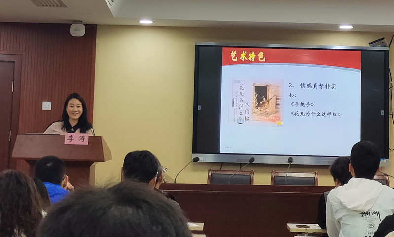 李涛老师开场以“红歌”的定义为引子,激发了大家对红色歌曲的兴趣,师生们热烈讨论并表达了自己的认识和体会。同时,李涛老师介绍了一些深入人心的红歌作品,并为大家作示范演唱,声情并茂、余音袅袅,听者回味无穷。每讲到动情处,李涛老师便不由自主地哼唱起来,通过现场演唱的方式展现歌曲的不同风格和特质,传达音乐背后蕴含的丰富情感。歌声贯穿于党课始终,大家的掌声也不绝于耳。