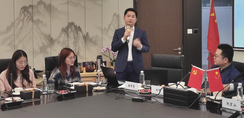 会议第一项由刘明老师致辞。刘明老师表示,自2018年起,在双方不断加强沟通的基础上,上财法学院与德恒律所一直以来都保持着良好的合作发展关系,上财法学院也曾多次邀请德恒律所开展校园宣讲活动,其中涵盖律师执业发展、面试技能、简历制作等多方面内容,本次活动更是进一步加强双方交流的契机,保持双方友好关系的发展。刘明老师还强调,本次活动主题是联合党日,希望借助本次交流使双方能在党建内容和形式上互通有无、取长补短,以更好实现后续党建工作的完善。