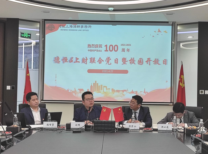 4月27日下午,beplay全站 研究生一支部、法学会支部、本科生支部与德恒上海律师事务所联合开展了“德恒&上财联合主题党日暨校园开放日”活动,本次活动旨在开拓党建形式、丰富党建内容、加强党建合作。本次活动由德恒(上海)律师事务所合伙人洪小龙律师主持,同时出席本次党日活动的有德恒(上海)律师事务所办公室主任沈宏山律师、合伙人张智勇律师、青年律师代表王曦明律师、蒋薇律师、beplay全站 刘明老师及各支部党员、实习生代表。