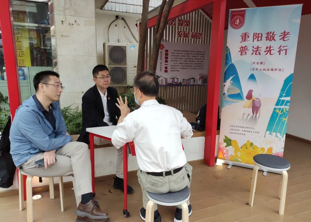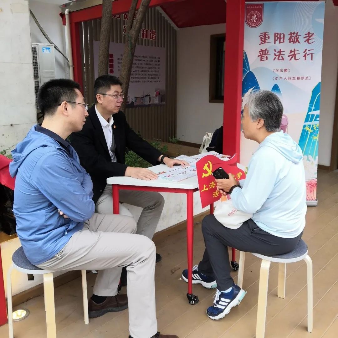 10月12日当天,除国定支路党群微空间的重阳助老普法活动外,法学院党员师生还奔赴五角场街道社区党群服务中心、财大科技园党群服务站开展社区普法。