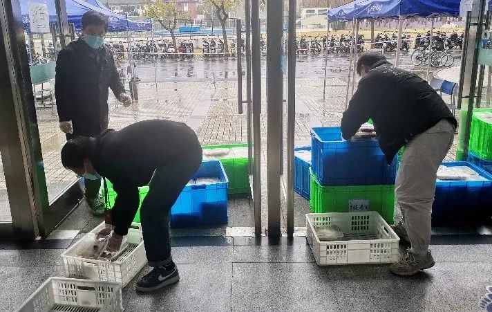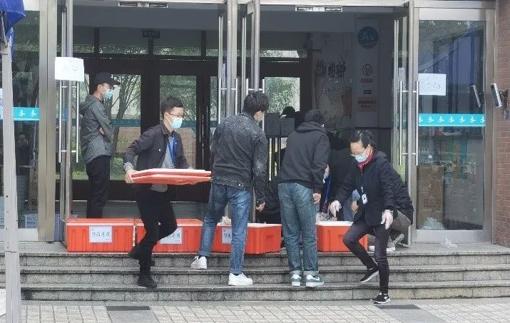 每日的早中晚餐,也是由各组志愿者送到相应的楼层分发。期间,他们先人后己、召之即来,总是先清点好所负责楼层的盒饭份数,完成派送后才开始用餐。由于份数较多,志愿者们经常楼上楼下搬运数趟,等其他同学都吃上热饭,自己的却已有些凉了。用餐时间刚结束,他们又要回收清理各楼层的饭盒和其他干湿垃圾,保持环境卫生。
