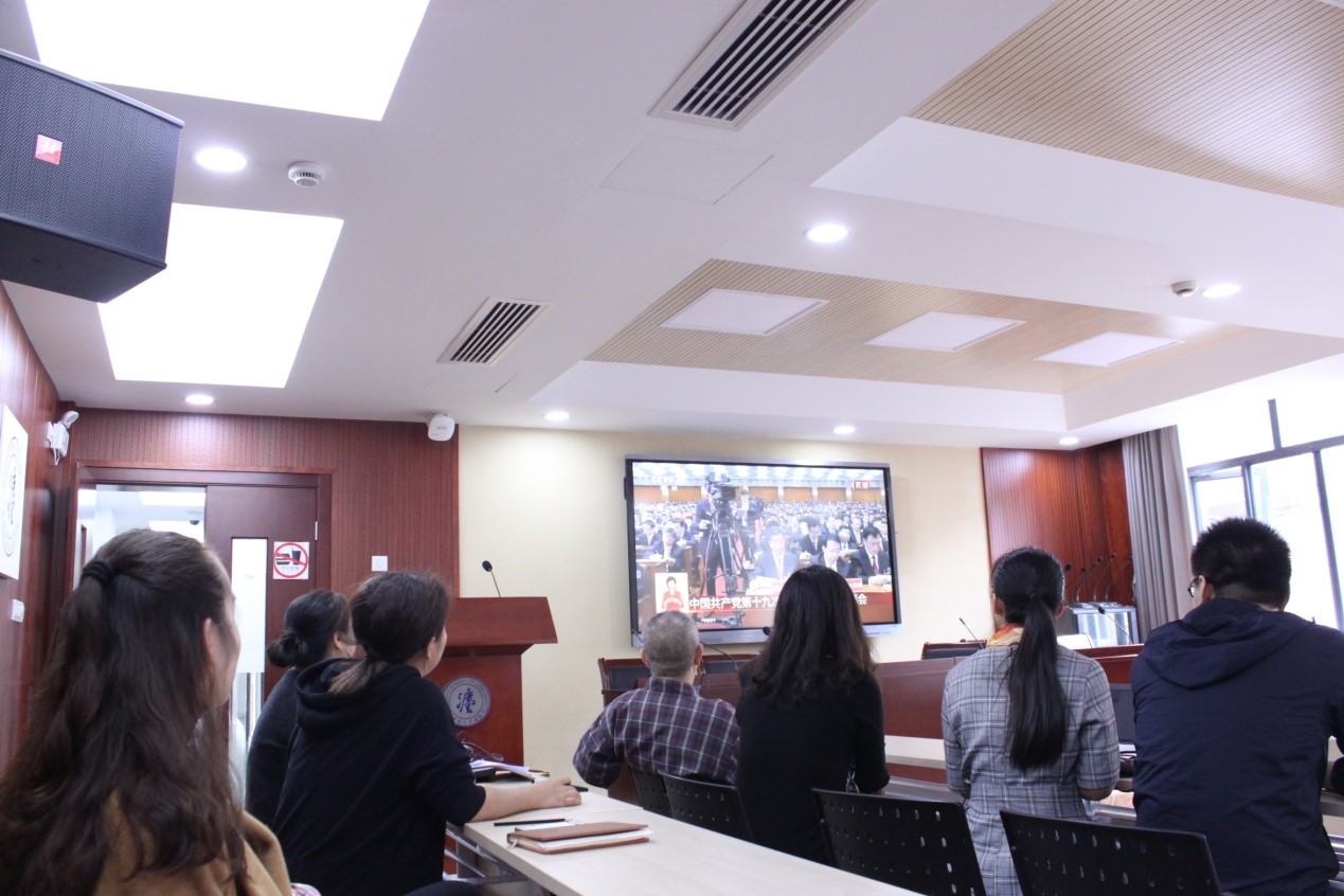 10月18日上午9时,中国共产党第十九次全国代表大会在北京人民大会堂隆重开幕。中共中央总书记习近平同志代表第十八届中央委员会向大会作了报告。法学院也积极组织全体教职工在法学院116会议室准时观看了十九大的开幕式。