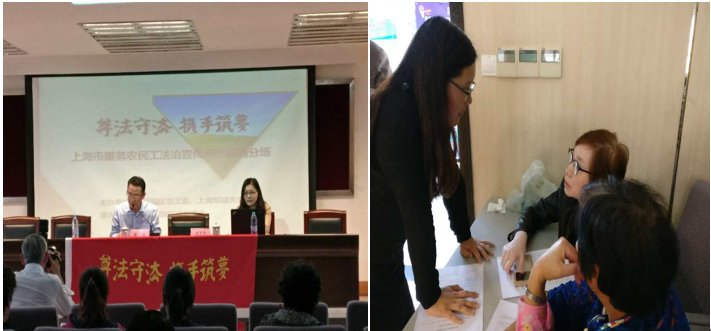 为深入贯彻中央党群团工作会议和全国高校思想政治工作会议精神,落实国务院《关于进一步做好为农民工服务工作的意见》,进一步做好新形势下为农民工服务工作,加强对农民工的人文关怀和法治宣传教育,中华全国总工会和教育部共同印发了《关于联合开展“尊法守法•携手筑梦”服务农民工法治宣传行动的通知》。为了落实这一“通知”精神,上海市总工会主办,市教育工会负责牵头,选定了包括我校在内的上海9所高校组建志愿服务分队,下基层为农民工开展法治宣读讲活动,我院接受校工会委托接受了这一光荣的任务。。