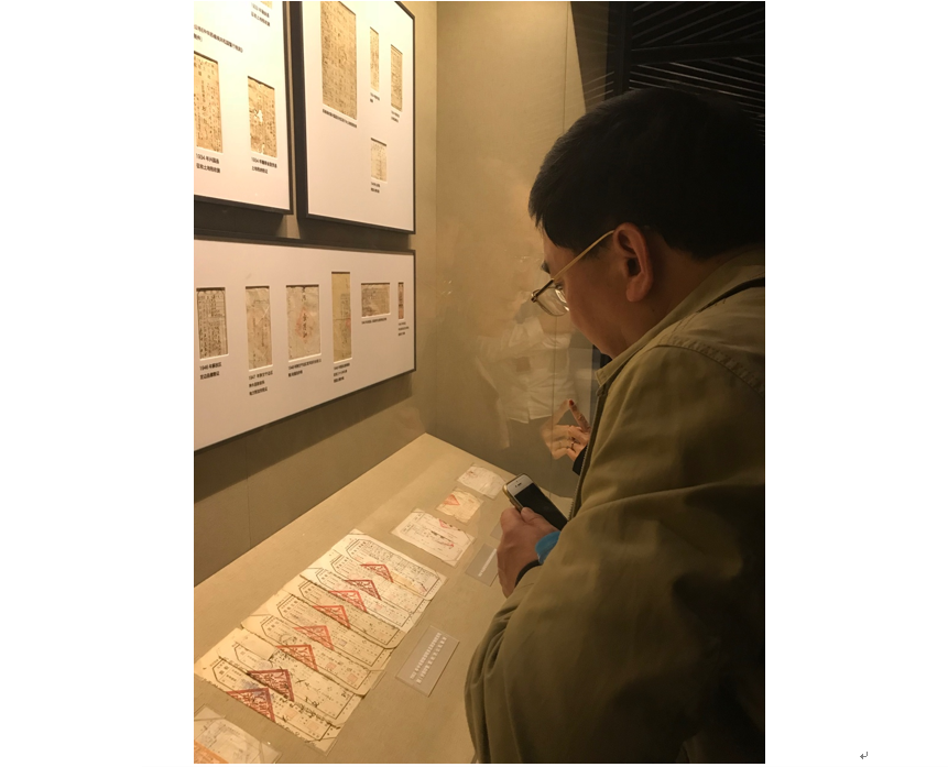 移步二楼,保险馆、税票馆呈现在眼前。保险馆通过三百余组文物,完整呈现了近代中国保险的沧桑变迁;税票馆展出的,是从馆藏八万余枚税票中遴选出四千余枚珍贵税票,以及两部世界邮展金奖税票集,展现税收历史,弘扬财税文化。老师们在参观的过程中不时展开热烈的讨论,结合自己的专业所长,进行深入思考。同学们也认真参观了每个展柜的展品,与身边的同学积极交流。结合场馆讲解员的介绍,近代中国保险的沧桑变化和源远流长的税收文化如精美绝伦的画卷,在老师同学们的眼前缓缓展开,引人入胜。