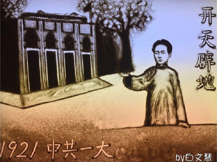 本次比赛通过百图绘中华复兴之路这样鲜活的形式,引导高校学子对历史的深入思考,让学生充分认识到当代青年生逢其时以及肩负的时代责任。引导当代大学生不忘初心,牢记使命。法学院研究生党员白文慧将自己对党和母校的热爱用沙画的形式表现出来,作为对祖国昌盛、母校百年、法学院30周年的祝福。