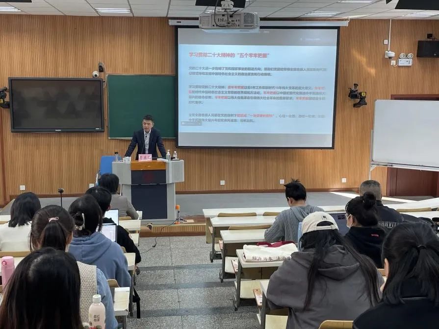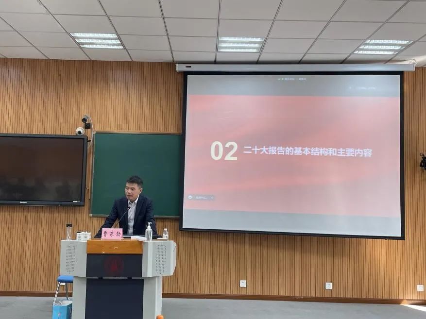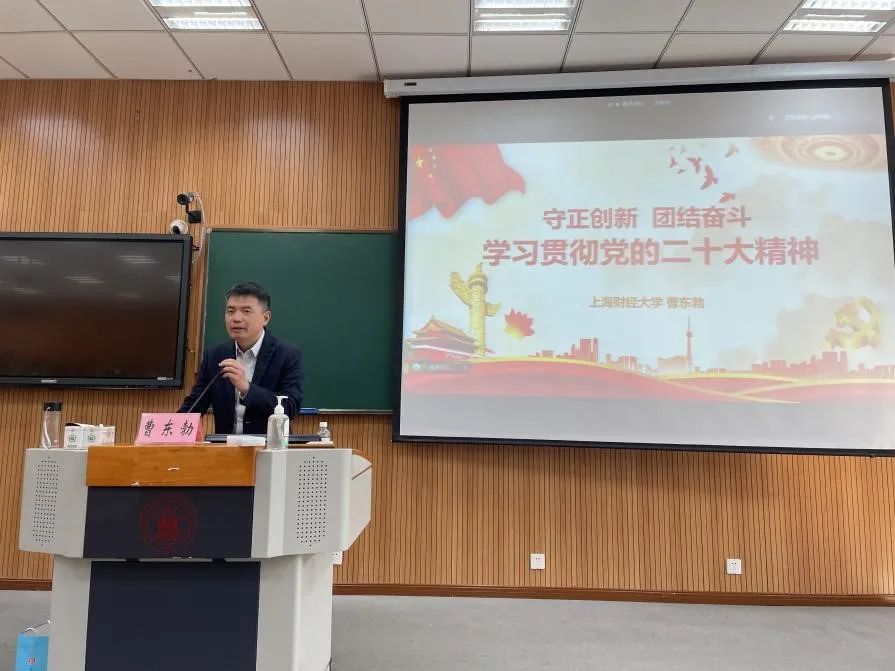 杨乐书记向大家传达了学习宣传贯彻党的二十大精神的通知及部署安排,强调学习宣传贯彻党的二十大精神,是当前和今后一个时期的首要政治任务。本次学习会特邀学校党校副校长、党委组织部副部长、“党的二十大精神”宣讲团专家组成员曹东勃教授为师生作了题为《守正创新 团结奋斗——学习贯彻党的二十大精神》专题学习报告。