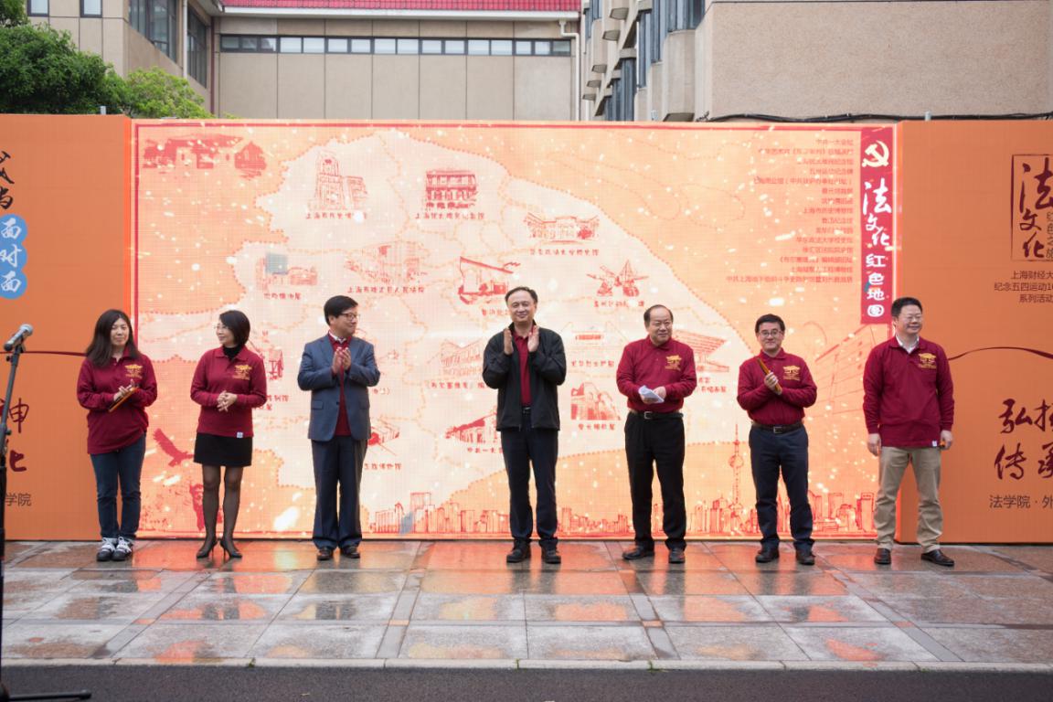为纪念五四运动一百周年和上海财经大学法学会成立三十周年,2019年4月28日中午,beplay全站 、外国语学院、国际文化交流学院依托二级分党校,于绿叶步行街共同举办法文化红色探寻活动展。上海财经大学党委书记许涛、副书记朱鸣雄、党委常委、组织部部长刘庆生、党委常委、宣传部部长章益国、党委常委、统战部部长周杰普、学生处处长倪志兴、校团委书记沈亦骏、外国语学院党总支书记蒋萍、国际文化交流学院党总支书记王玲以及法学院、外国语学院、国际文化交流学院的班主任教师和二级分党校全体学员共同参加了本次活动。法文化红色探寻系列活动作为杨浦区人文行走活动的一项内容,也得到了杨浦区学习办的大力支持,杨浦区学习办常务副主任王建平、党支部书记兼综合部部长陈向阳、活动部部长李瑾及项目部副部长洪礼珍出席了本次法文化红色探寻活动展。展示活动的启动仪式由法学院党委书记杨乐主持。